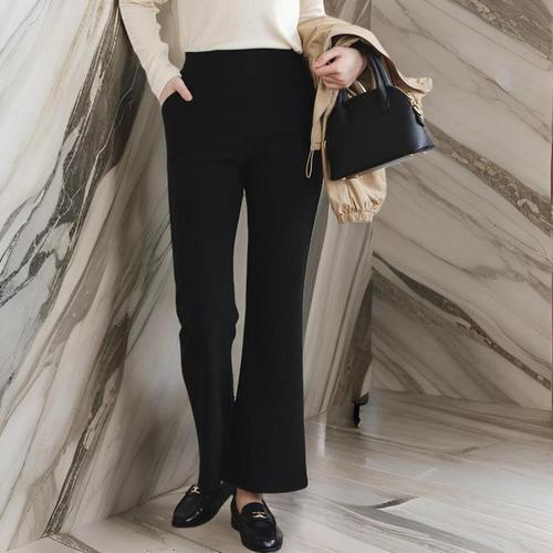 [엄지척]밴딩 하이웨스트 부츠컷팬츠 여성 기본 검정 슬랙스핏_19994679_667501