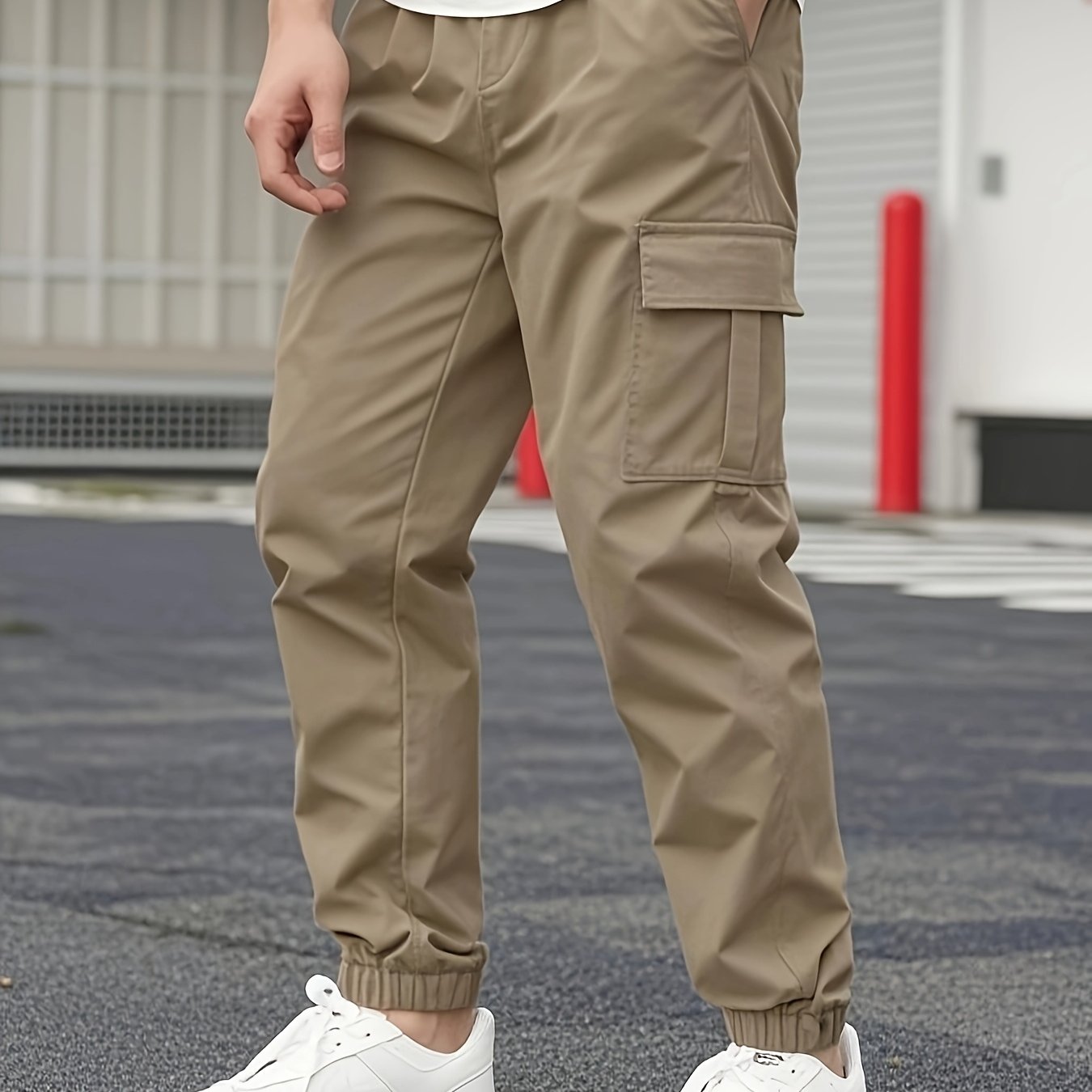 TEMU 남성 캐주얼 스포츠 단색 작업 바지