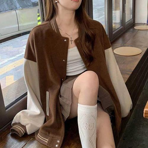 [에이치플러스몰]배색 기모 야구 점퍼 봄 겨울 루즈핏