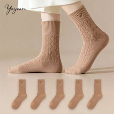 여성용 곰돌이 포인트 귀여운 기모 겨울양말 5켤레 세트