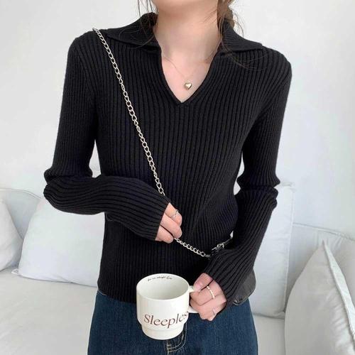 [오너클랜]인기상품 가을 겨울 모임 데이트 코디 브이넥 카라 골지 니트 [WFJB524_251104]
