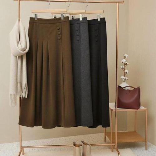 [옷자락] 여자 플리츠 싸개단추 A라인 겨울하객룩 롱스커트