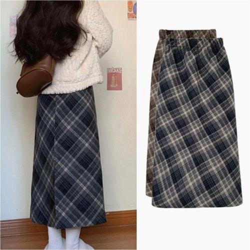 여성 가을 겨울 허리 밴딩 체크 빈티지 롱 치마 스커트 WFL3P8M