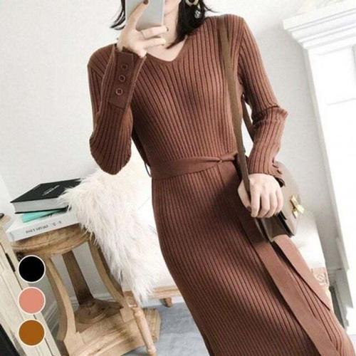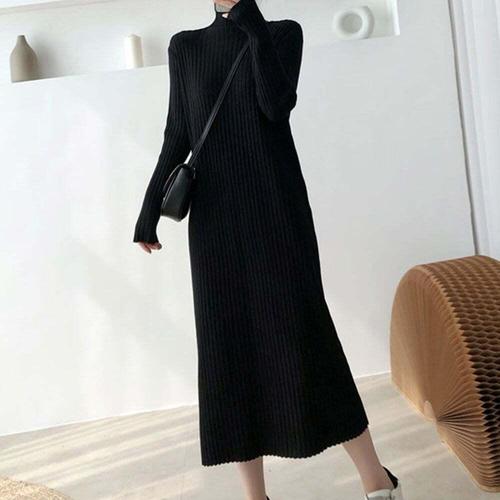 [셀럽하우스]니트 YQIO5290 베이직 골지 롱원피스 겨울 올데이