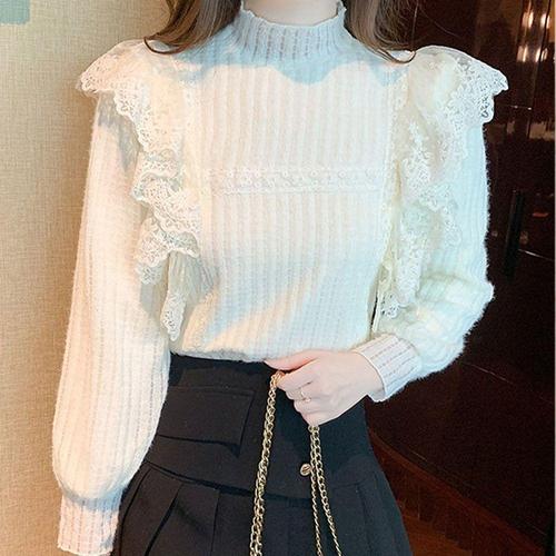 [오너클랜]인기상품 레이스블라우스 아이보리 프릴 블라우스 결혼식 레이스 하객룩 반목 [WFJH1CI_251108]