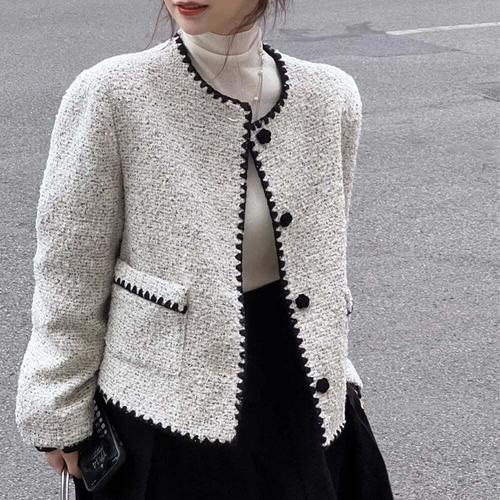 [셀럽하우스]여성자켓 WMGO5773 노카라 스티치 트위드자켓 결혼식하객
