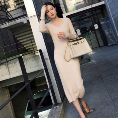 여성 가을 결혼식 하객룩 상견례 니트 롱 원피스