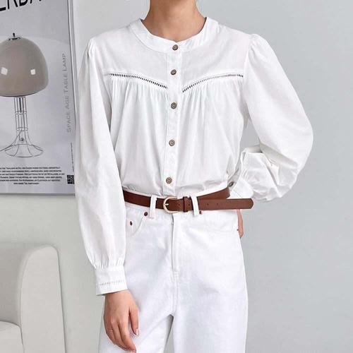[라일리의류] Rly 노 카라 여성 펀칭 블라우스 봄 여름 결혼식 하객패션