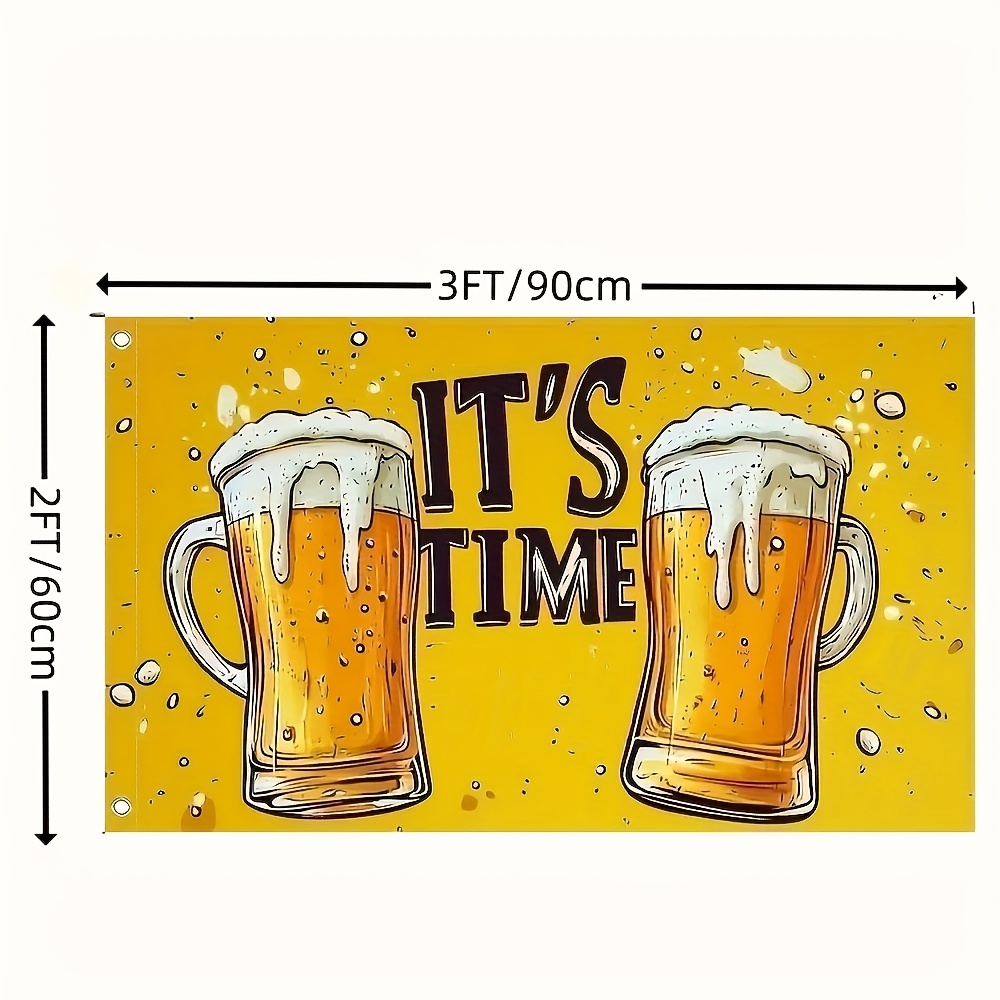 TEMU A Fun 맥주 테마 깃발 - 맥주 한 잔 시간을 위한 100% 폴리에스터 재질, 밝은 노란색 배경에 재미있는 맥주 머그 디자인, 사계절에 적합하며, 코티지, 마당, 정원 파티 및 축하 테마에 적합