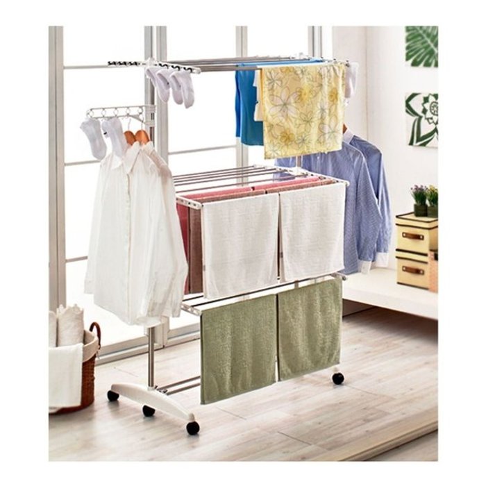 SONGMICS 튼튼한 이동식 실내외 겸용 다기능 스틸 빨래건조대