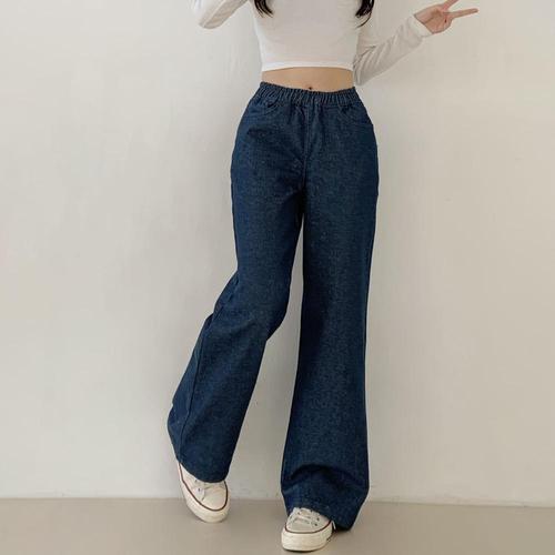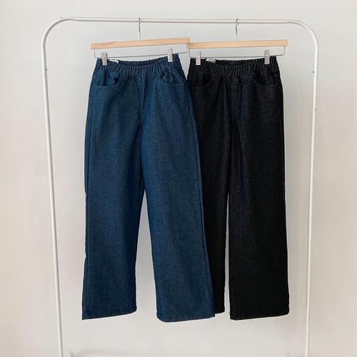 와이드 데님 밴딩 팬츠 남녀공용 세미 고무줄 청바지