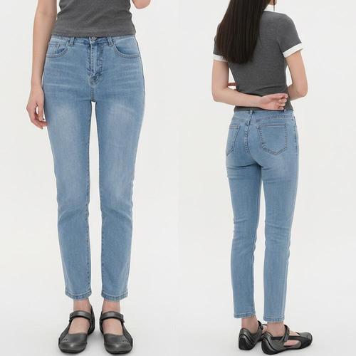 여자 하이웨이스트 슬림 고무줄 편한 데님팬츠
