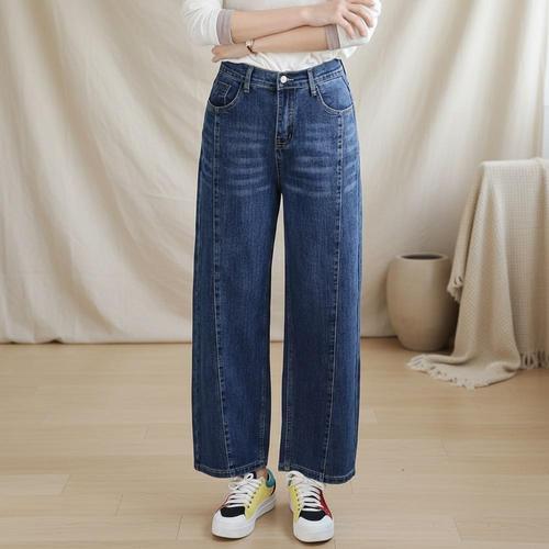 봄 간절 여성 세미와이드 스트레이트핏 청바지 빅사이즈 남성 밴딩청바지