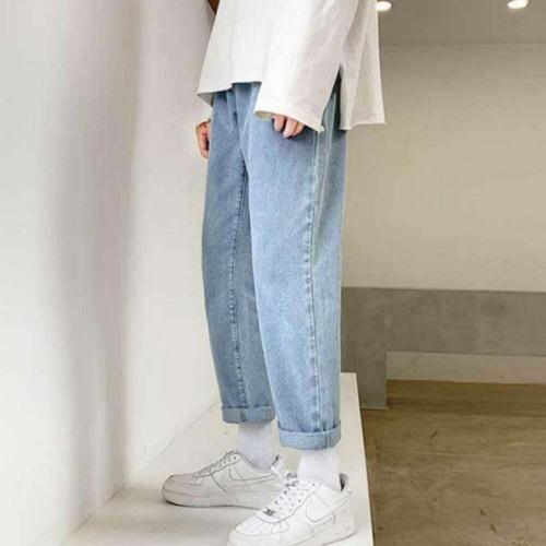 남성 9부청바지 밴딩 고무줄 남자 일자 데님팬츠 간절기 허벅돼