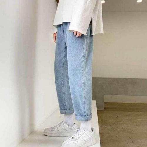 [셀러허브_여성트랜드패션]밴딩 9부 남자 팬츠 일자 데님 고무줄 청바지 간절기