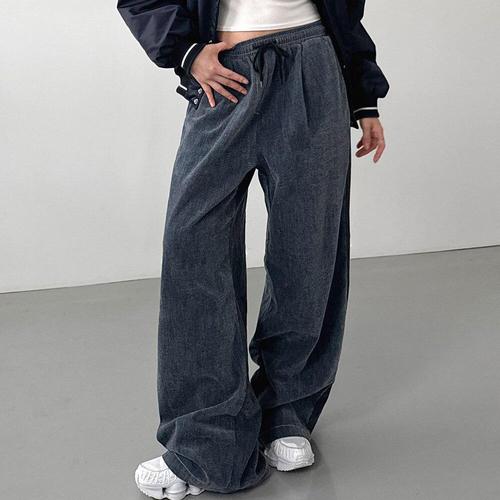 [다잇템]여자 와이드핏 고무줄 벨벳데님 주머니 청바지