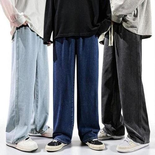 SMOPIG 남성용 와이드 청바지 사계절 밴딩 남자청바지