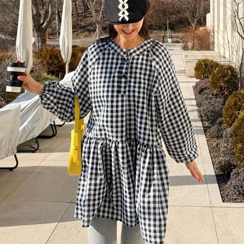 [다잇템][다잇템] 여자 격자 순면 깅엄 긴팔셔츠핏 봄남방 고방 원피스_16032715_588872