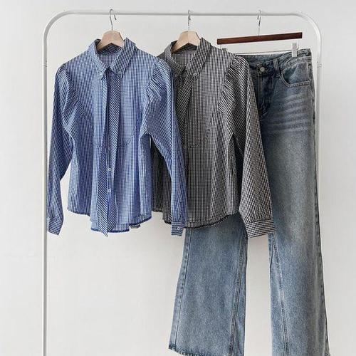 [셀러허브_여성트랜드패션]상의 셔츠 고방체크 벌룬소매 봄나들이 GWM