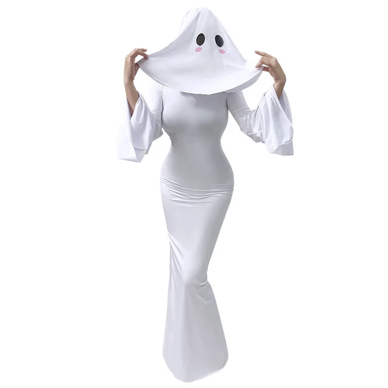 섹시한 백리스 고스트 걸 코스프레 드레스 무대 공연 할로윈 의상 여성 전통 의상 이국적인 여름 패션