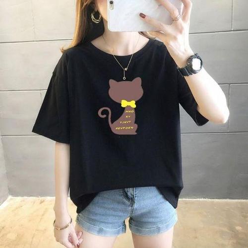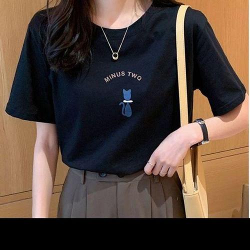 [에이치플러스몰]캐주얼 여성반팔티셔츠 캐주얼 고양이 베이직한 필수