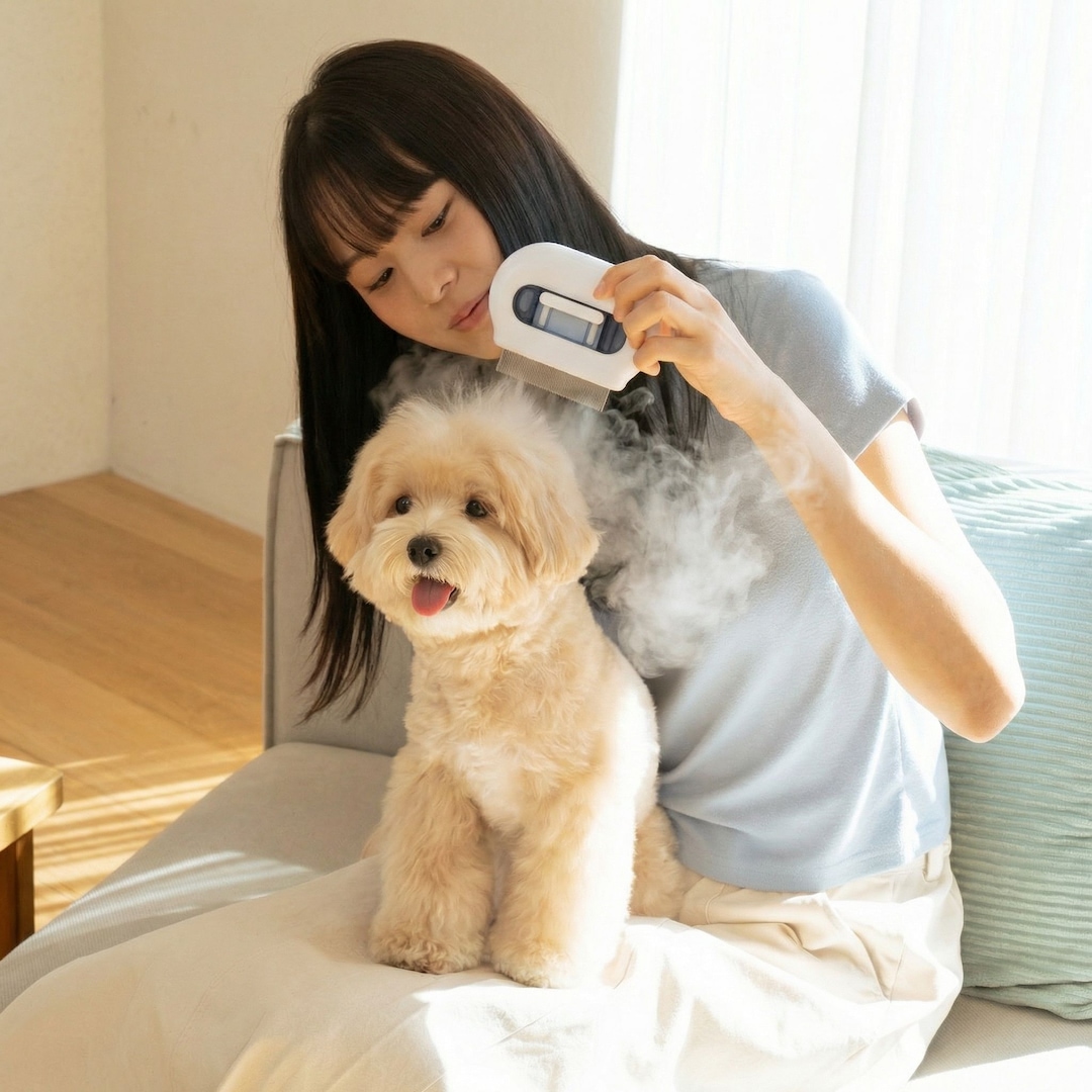강아지 고양이 스팀 브러쉬 전동 미스트 마사지빗 스프레이 브러시 죽은털 제거