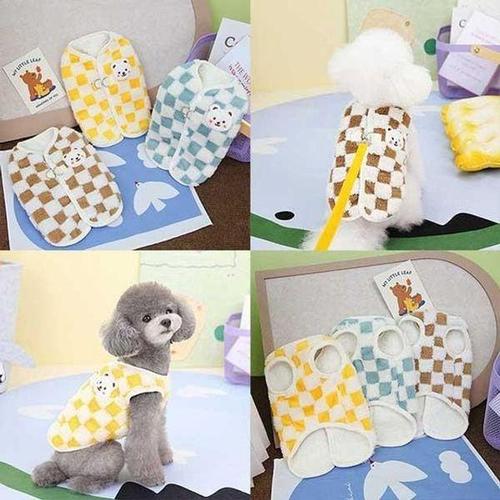 [에이치플러스몰]뽀글이 후리스 체커보드 2겹 링 단추 강아지 고양이 하네스 조끼 애완 고양이 애견 강아..