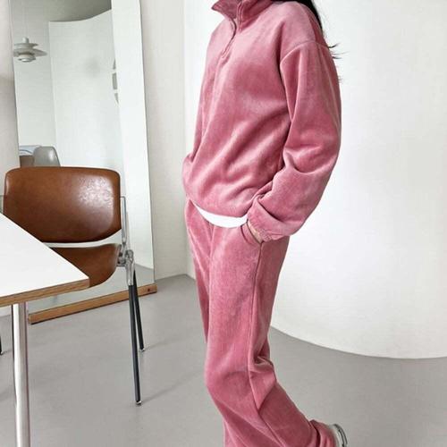 잘빠진 기모 루즈핏 벨벳 코듀로이 반집업 상의 + 일자 롱 밴딩 팬츠 세트