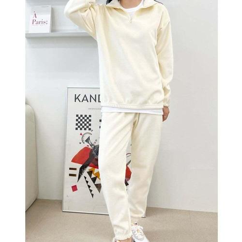 [셀럽하우스]기모 EFAF2247 여성 조거 팬츠 맨투맨 세트 반집업 골덴 츄리닝