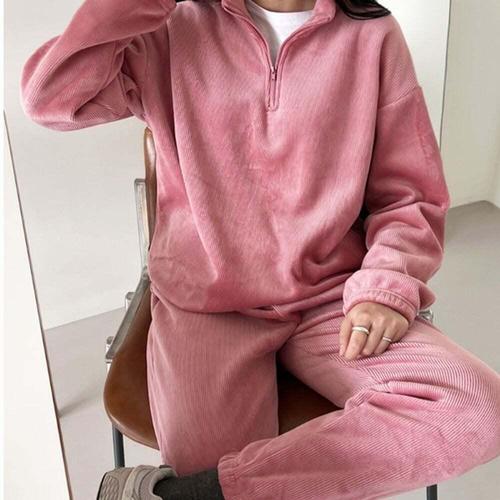 [셀럽하우스]기모 XZLK4788 여성 반집업 조거 팬츠 세트 여자 골덴 츄리닝