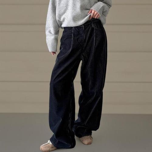 [신상오픈런]여성용 데일리 골덴 와이드핏 팬츠 워싱 바지 (42510814)