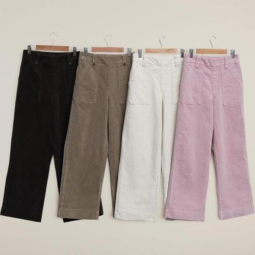 [신상오픈런]여성 대형 포켓 골덴 뒷밴드 세미 와이드 스판 기모 팬츠 (43167054)