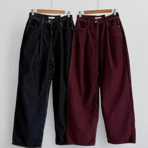 [신상오픈런]여성 핀턱 와이드 골덴 맥시 팬츠 와인색 가을용 바지 (43167048)