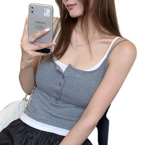 [셀러허브_여성트랜드패션]크롭티 브라탑 배색 캡내장 HL] 골지 나시티 끈나시