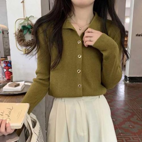 [다잇템]여성용 카라 메탈버튼 골지 롱슬리브 가디건