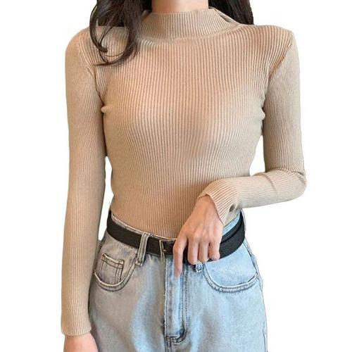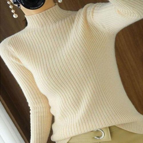[에이치플러스몰]목폴라 간절기 하프넥 여자 긴팔 베이직 니트티 골지