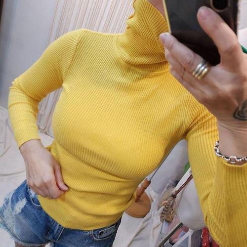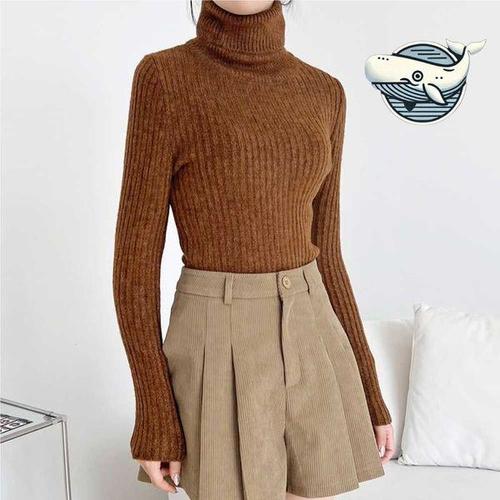 더시럽 여성용 골지 터틀넥 풀오버 긴팔 슬림 목 폴라 니트티 B