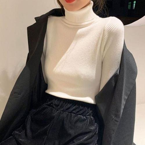 [에이치플러스몰]데일리 슬림목폴라 골지 여성 니트티 이너 봄가을겨울