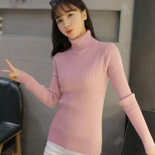 [에이치플러스몰]부드러운 골지 슬림핏 목폴라 니트 가을겨울