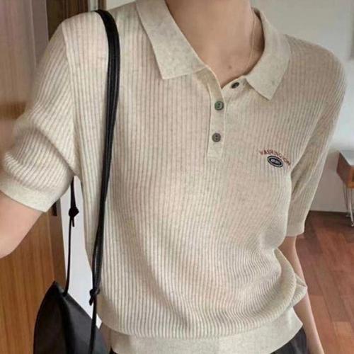 레몬소울 여성용 로텔 라운드 골지 니트 반팔 티셔츠