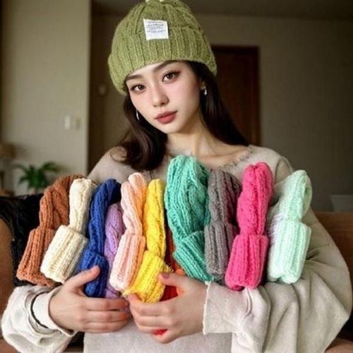 [신상오픈런]여성용 7가지 색상 스터드 장식 골지 비니 (41581461)