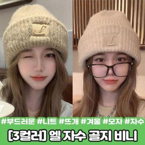 [에이치플러스몰]엘 골지 겨울 비니 니트 자수 모자