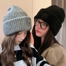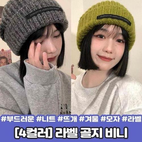 [에이치플러스몰]골지 비니 겨울 니트 모자 뜨개 라벨 소프트