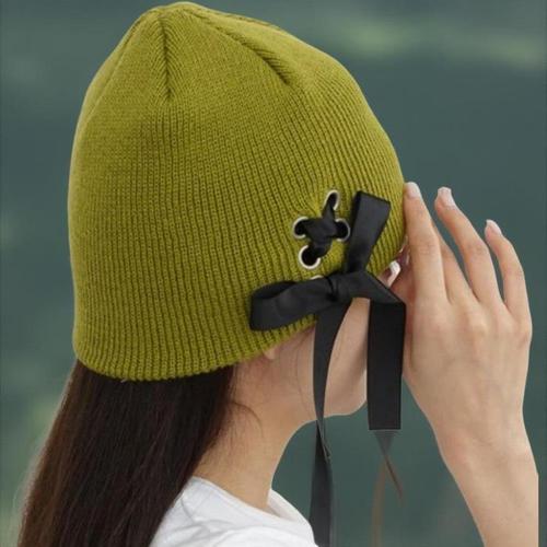 [신상오픈런]여성 러블리 레이스업 리본 골지 니트 비니 모자 (40818321)