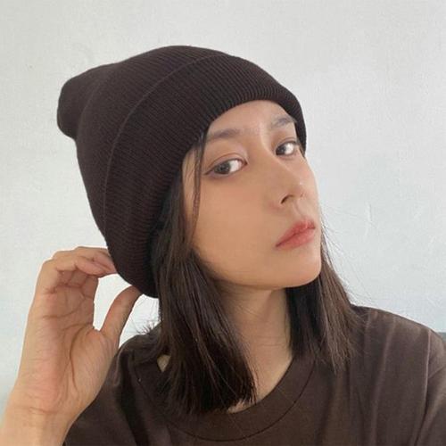 비비드 니트 롱 비니 여자 와치캡 대두 무지 겨울 모자