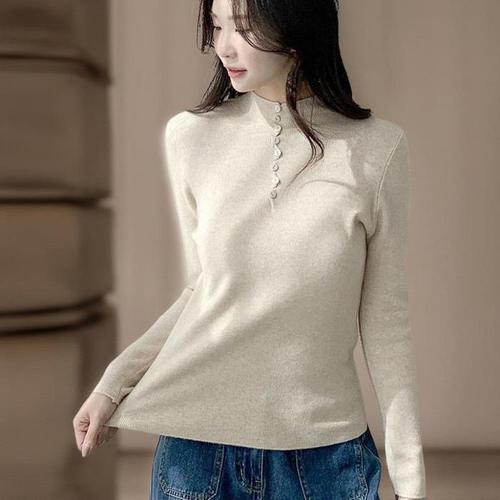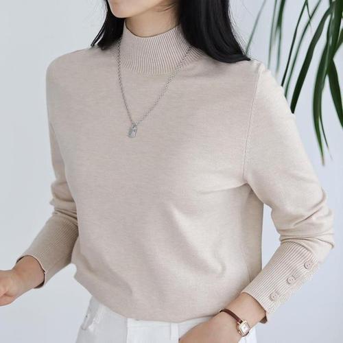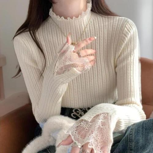 [신상오픈런]여성 레이스 버튼 긴팔 골지 터틀넥 부드러운 가을 니트 (40165574)