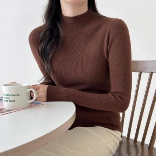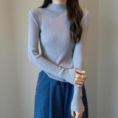 [신상오픈런]여성 슬림핏 반목 긴팔 니트웨어 무지컬러 잔골지 (39101603)