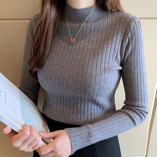 여성 겨울 하이넥 목폴라 긴팔 골지 터틀넥 폴라 티셔츠