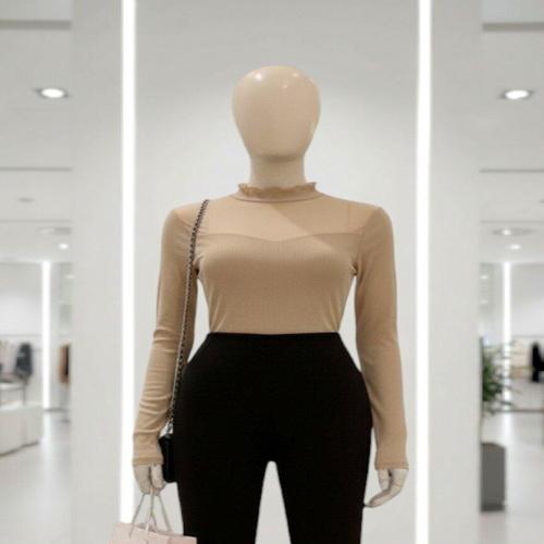 [비바앤코코넛]반폴라 슬림 망사 골지 이너 스판 티셔츠