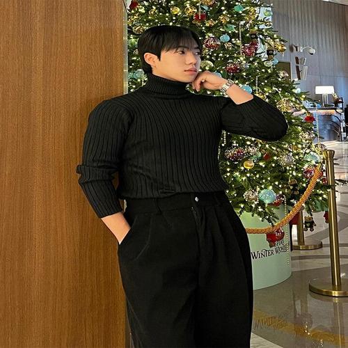 겨울 남성 골지 하이넥 목폴라 터틀넥 긴팔 티셔츠